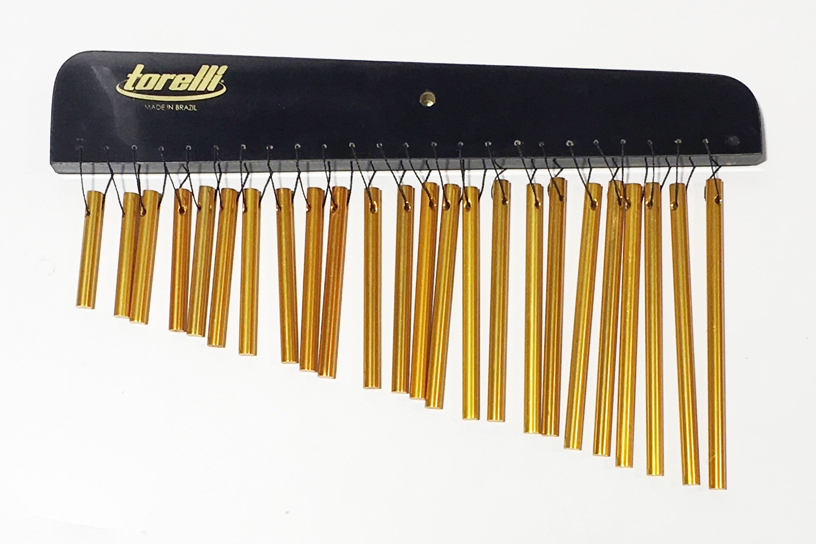 Carrilhão com 24 barras. Em madeira marfim e barras em alumínio polido.